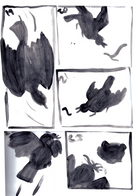Some of the compositional issues were resolved here, using acrylic also allowed me to do multiple iterations of the same panel or page quickly, and with minimal effort. This allowed the flow of work to run smoother than if I was using any other media and resulted in some interesting shapes. Working on the background proved near impossible at the time otherwise the panels would have ended up being very muddy.